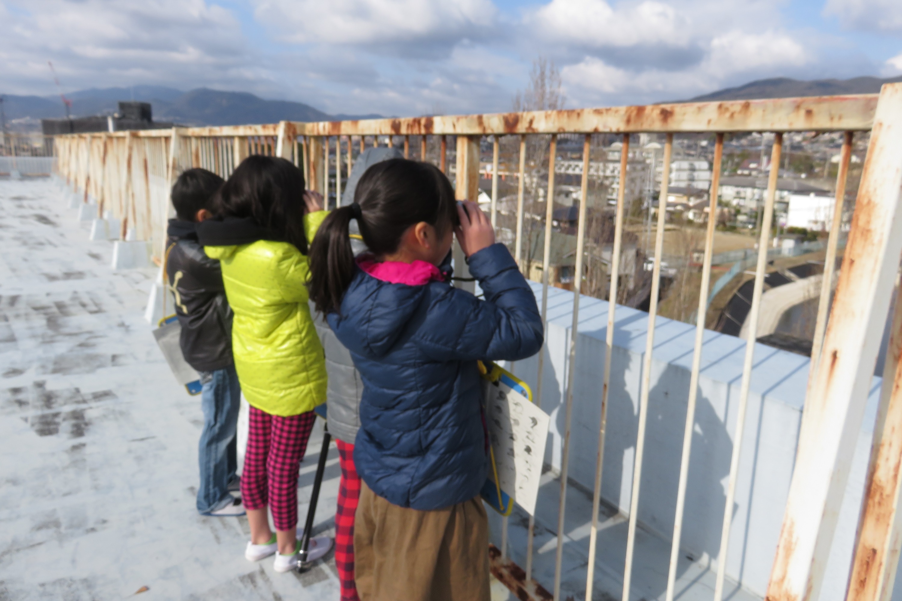 児童全員が双眼鏡を使って、ときどき指導員の望遠鏡をのぞいて、