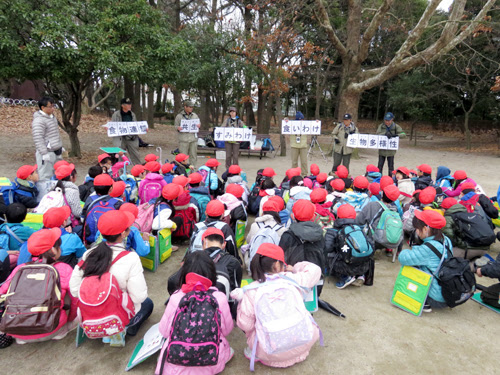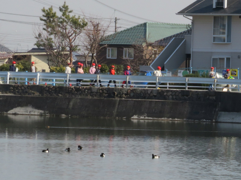 ちらりと小雪が舞うお天気でした。子どもたちは小学校から「あいあいパーク」の池まで歩いてきてくれました。