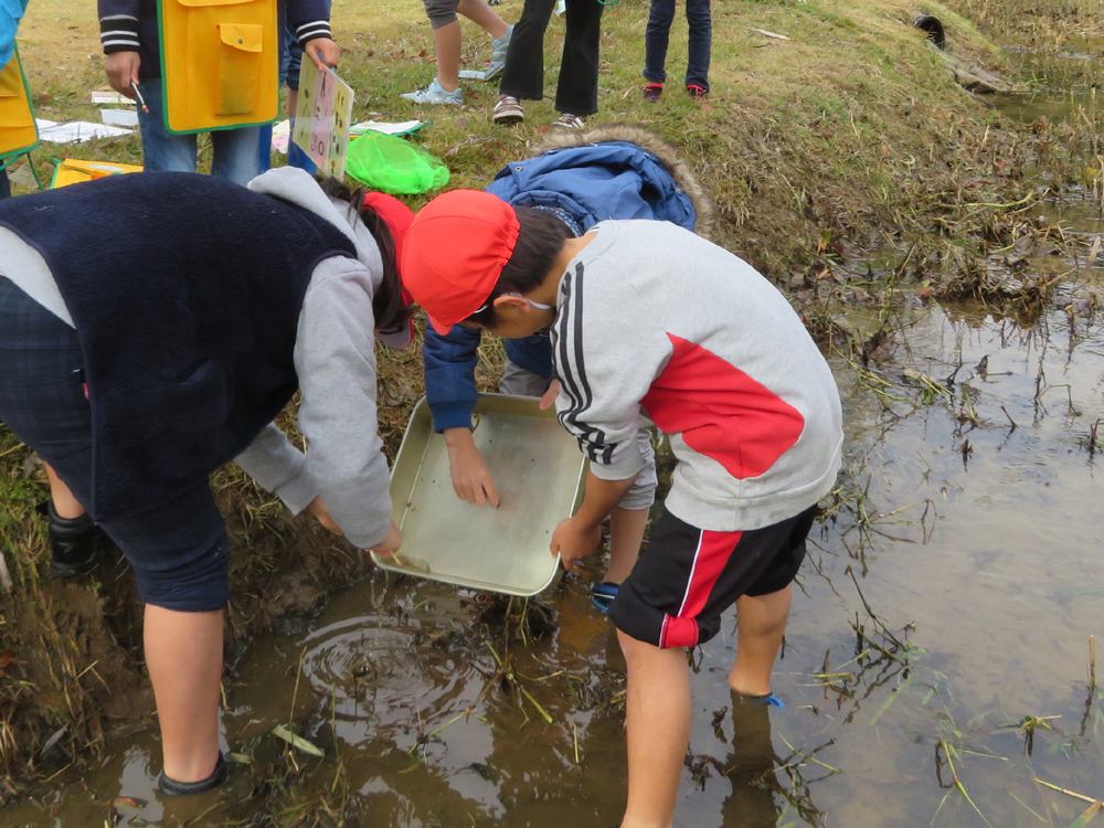 りました。絶滅危惧種や外来種もありました。水の中には魚のほかにもヤゴやカ