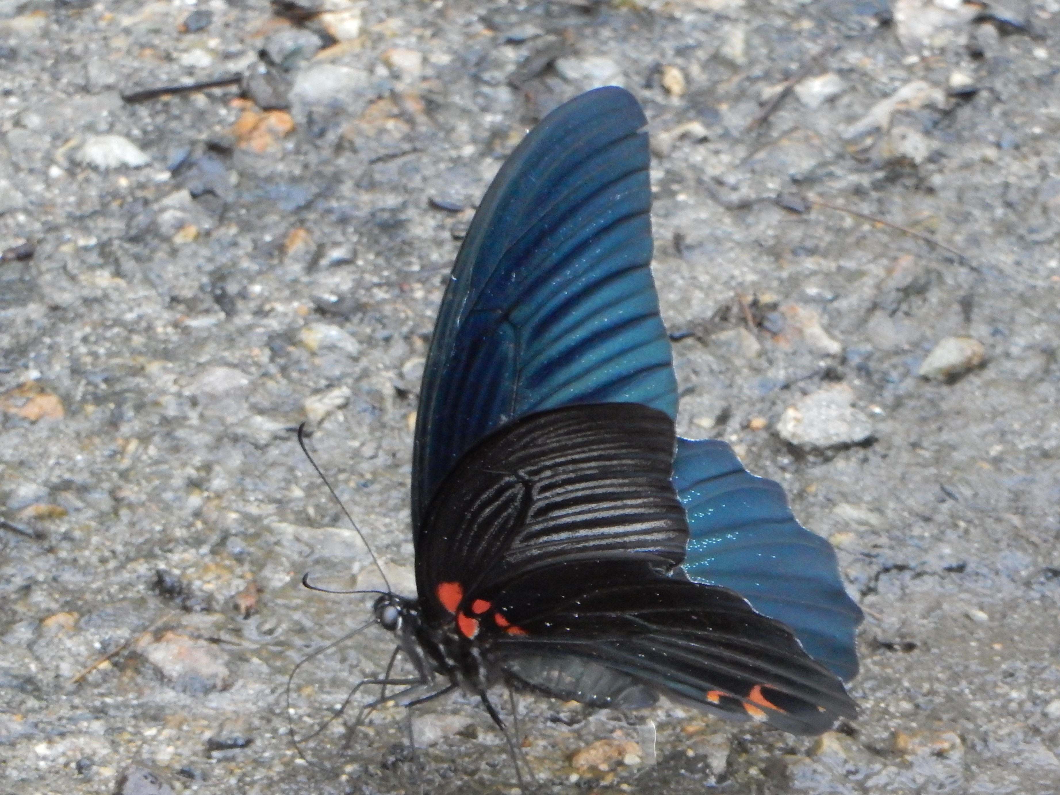斜面から流れてきた水溜りに、時間をあけてクロアゲハ、ナガサキアゲハ、アオスジアゲハの♂が複数吸水にきていた。体温を下げる目的とも、交尾時の精子とも関係があると記されている。