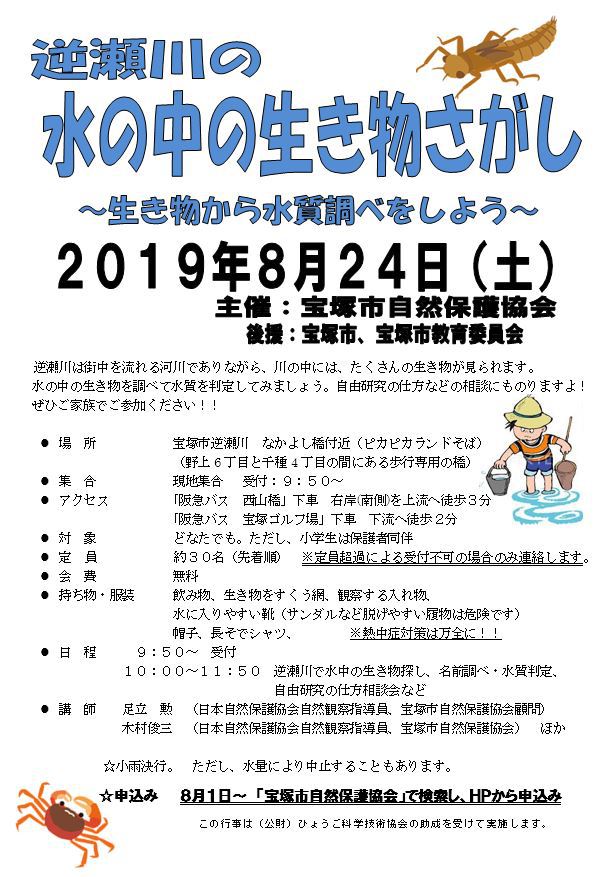 • 7月24日(日) 水辺の生き物探検(逆瀬川)