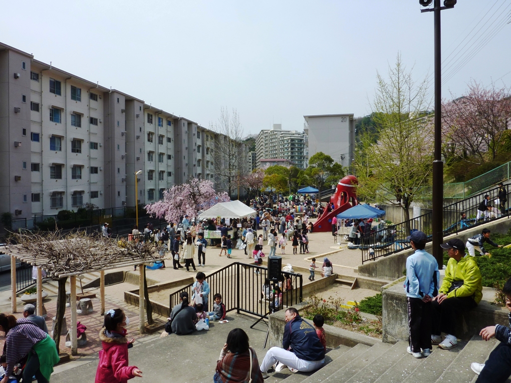 4月12日、自治会主催 春(さくら)祭り 五平餅の販売・風車の提供で参加 (団地内・たこちゅう公園)