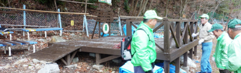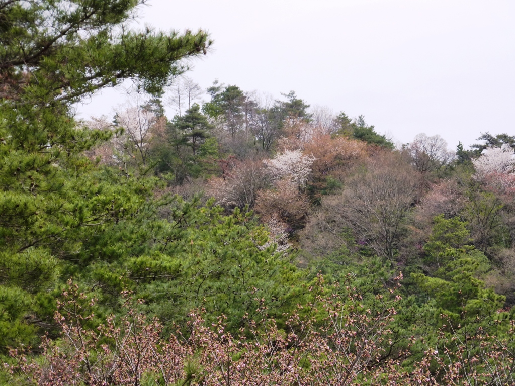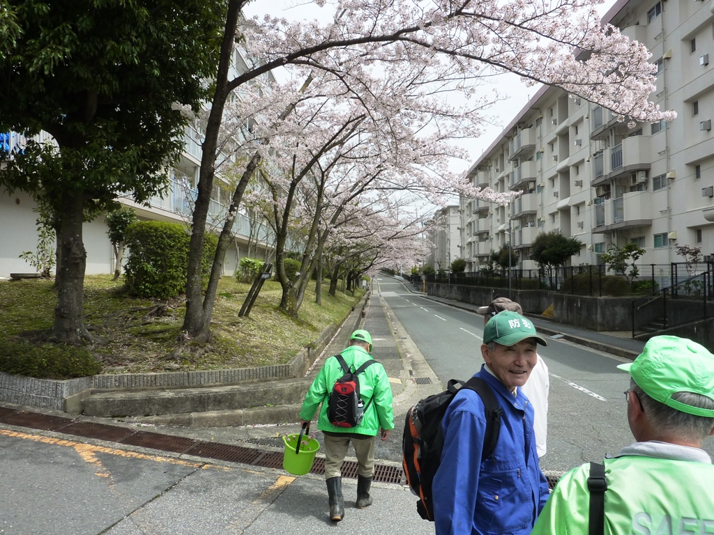校門東の山。8年も経てば物は傷みます。作業を終えて団地に戻りました。