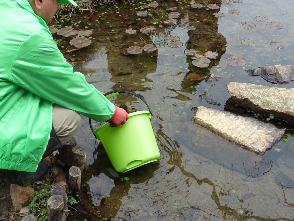 今年もここでドラマが 破損していた取水管 めだかを放流