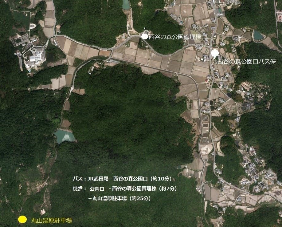 丸山湿原にはトイレはありません。西谷の森公園は月曜休園です。