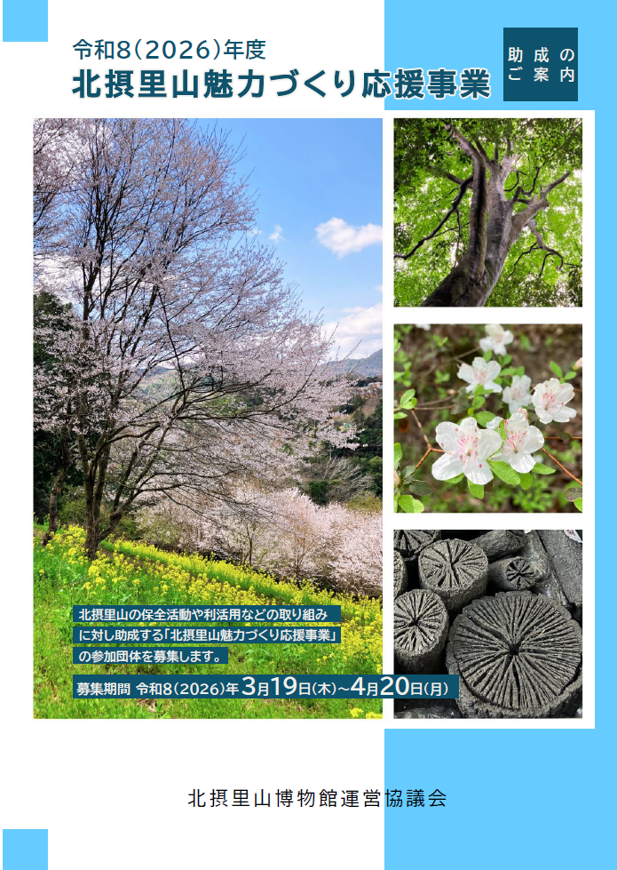 北摂里山の保全活動や利活用などの取組みに対し助成します。北摂里山博物館構想」のもと、北摂里山の持続的な保全を図り、地域の活性化につなげることを目的とします。