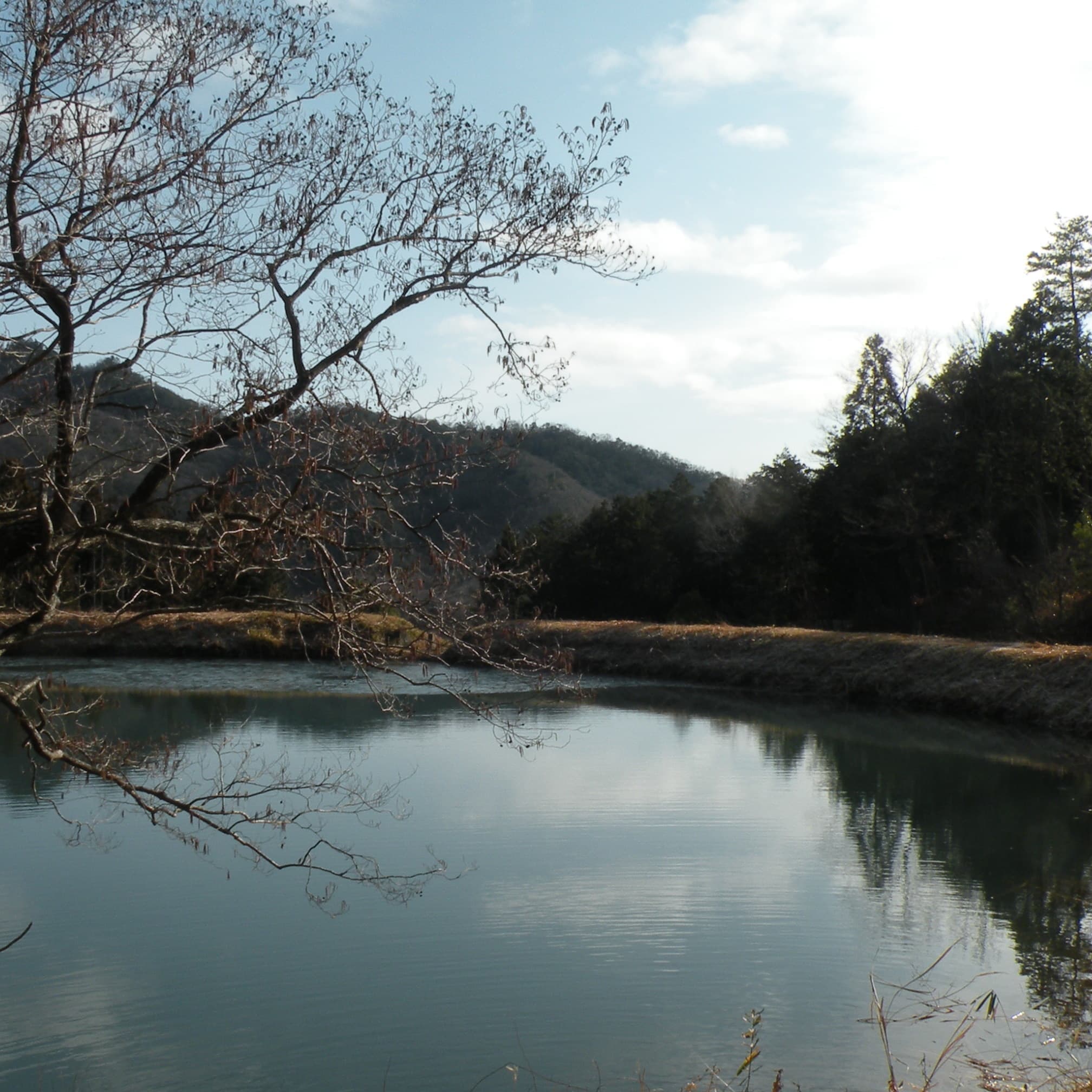 棚田の奥にはため池を中心にした里山が広がり、頂上への遊歩道も整備された森です。炭焼窯もあり小学校の体験学習にも利用されています。